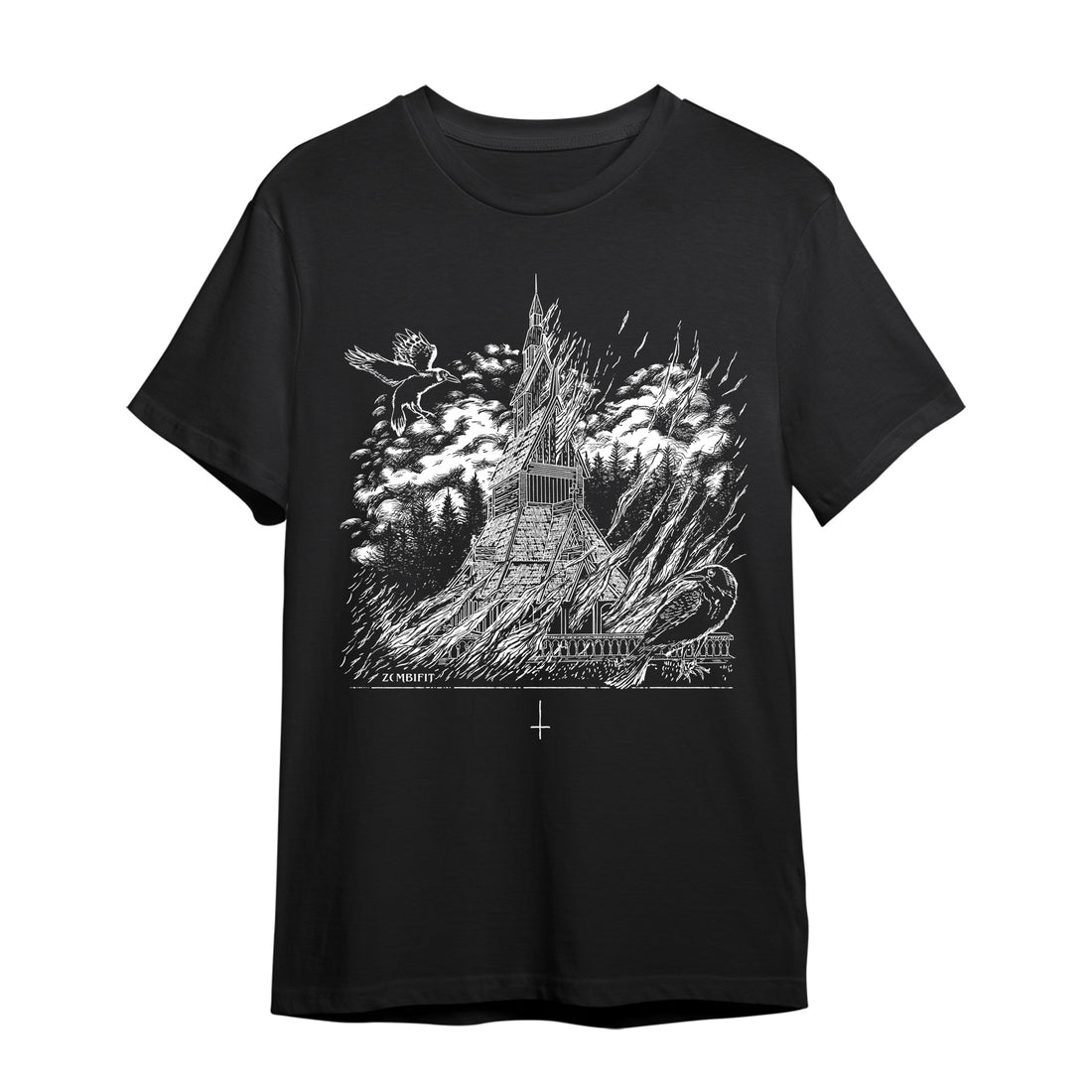 Black Metal Stave Church Graphic T-Shirt