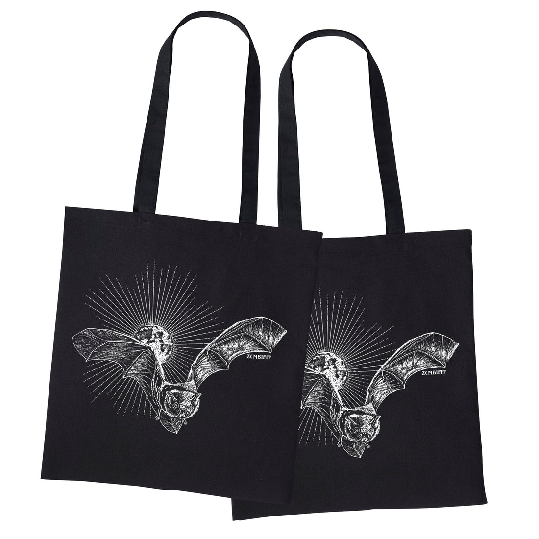 Black Bat Tote Bag – Gothic 100% Cotton Shopping Bag,
